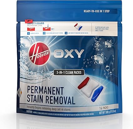 Hoover Oxy Permanent Stain Removal Carpet Cleaner Solution Clean Packs, AH37002, White