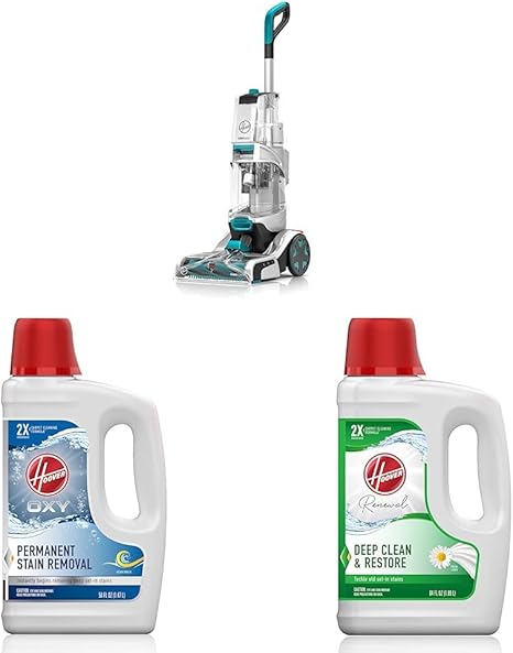 Hoover Smartwash Automatic Carpet Cleaner, FH52000, Turquoise & Hoover Oxy Deep Cleaning Carpet Shampoo, 50oz Formula, AH30950, White & Hoover Renewal Deep Cleaning Carpet Shampoo, 64oz Formula