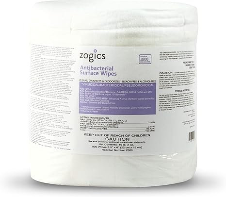 Zogics Antibacterial Wipes ‰ÛÒ Disinfecting Wipes for Sanitizing and Cleaning Surfaces and Equipment, EPA Registered Antibacterial Cleaning Wipes (1 Roll of 800 Wipes)