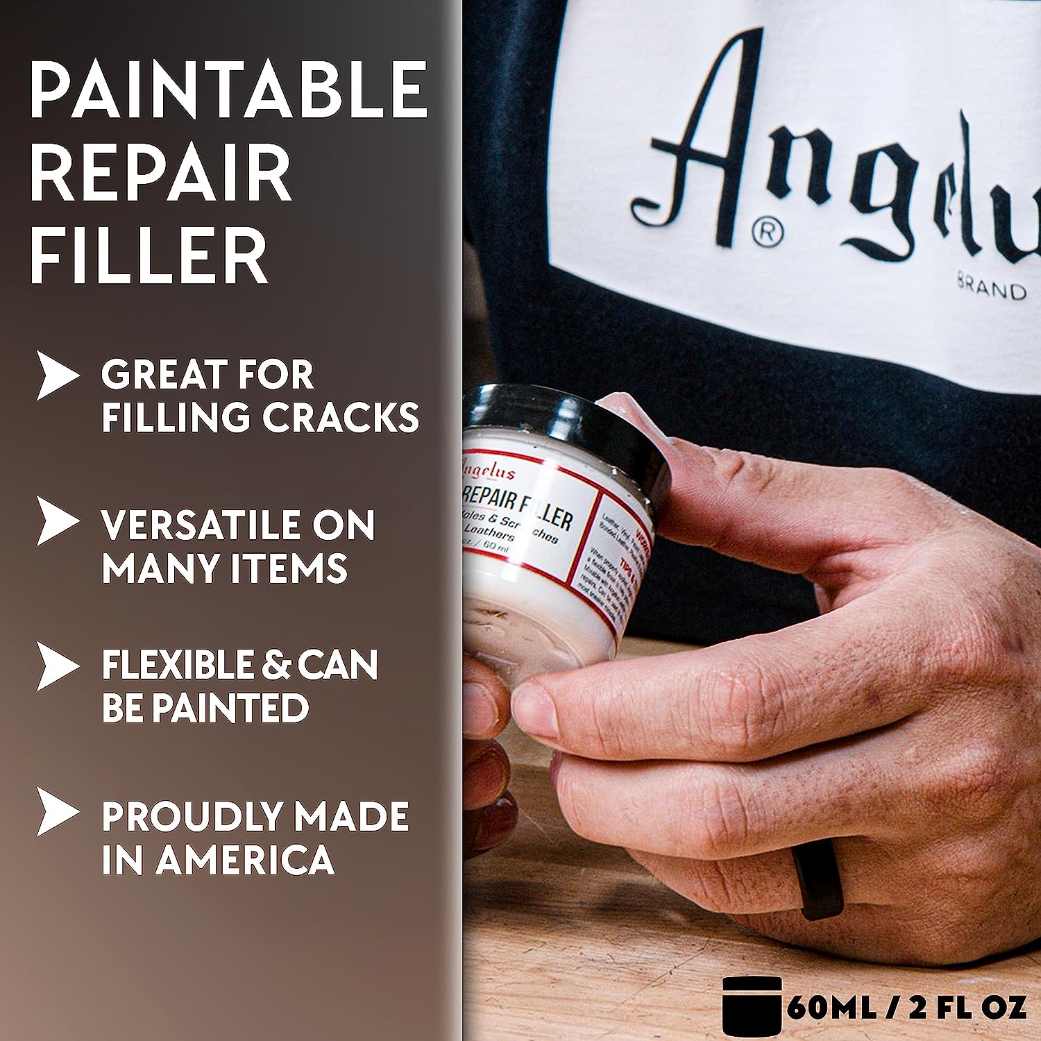 Angelus Leather Filling Paste Filler for Filling or Repairing Holes, Tears, Cracks, Scratches, for Leather Car Seats, Furniture, Shoes- Flexible - 2oz