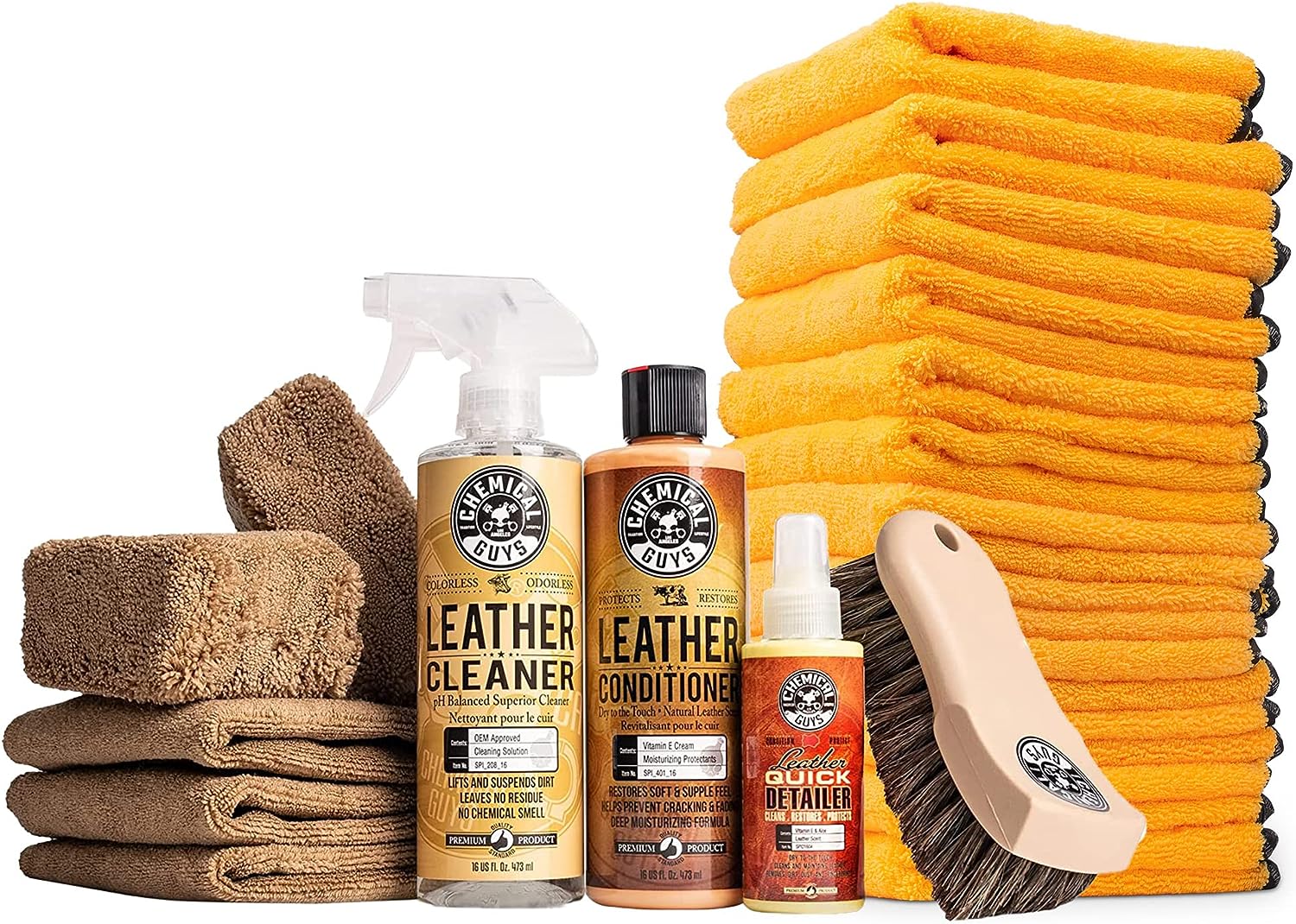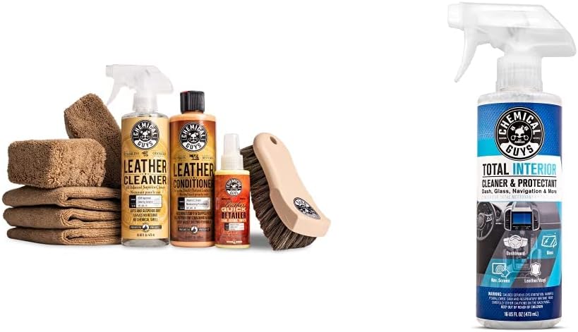 Chemical Guys HOL303 Leather Cleaner and Conditioner Detailing Kit, for Interiors, Leather, Apparel, Furniture, Boots, and More (Works on Natural, Synthetic, Pleather, Faux Leather and More), 9 Items
