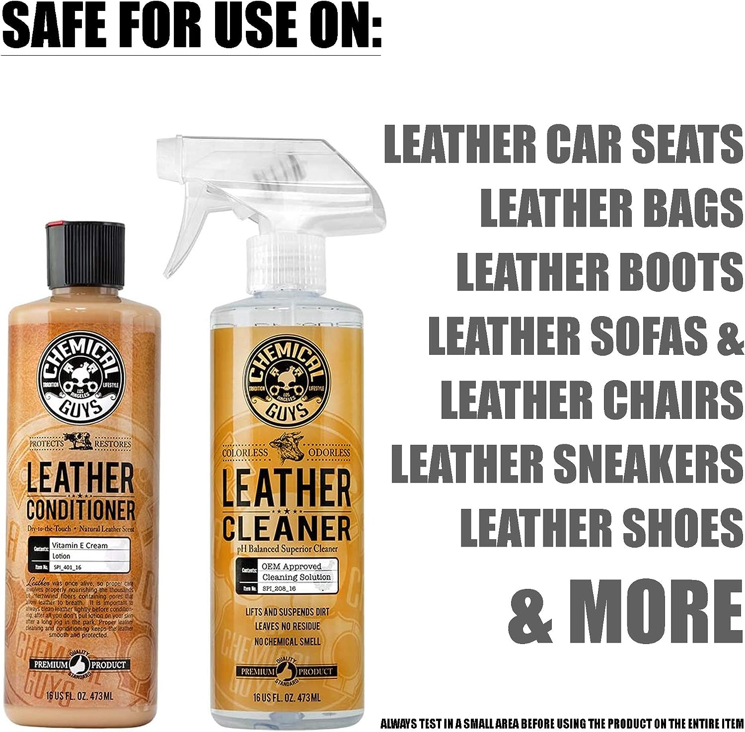 Chemical Guys SPI_109_16 Leather Cleaner and Leather Conditioner Kit for Use on Leather Apparel, Furniture, Car Interiors, Shoes, Boots, Bags & More (2 - 16 fl oz Bottles)