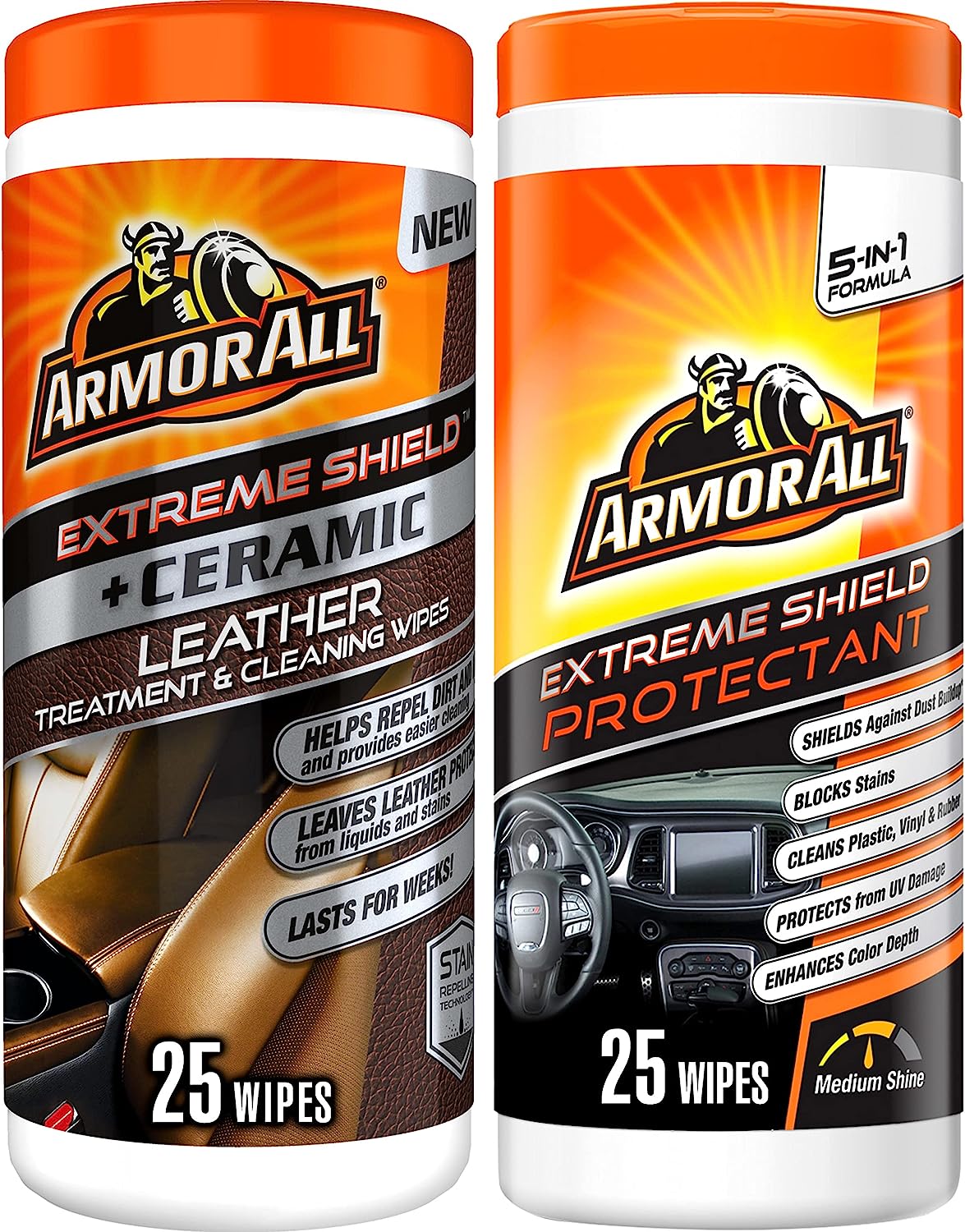 Leather Cleaner Wipes by Armor All, for Car Interior with UV Protection, Ceramic Leather and Extreme Protectant Wipes Bundle (50 Wipes Total
