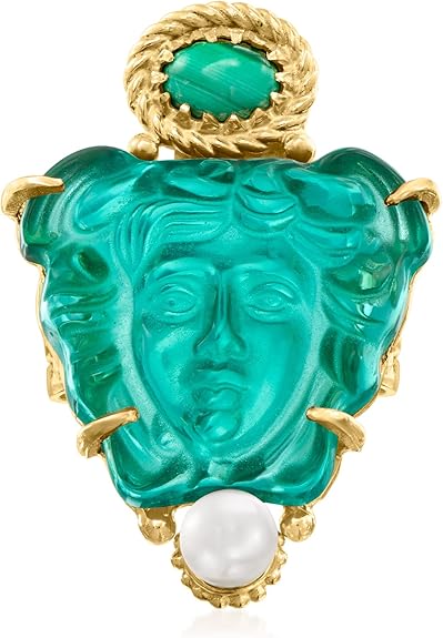Ross-Simons Italian Tagliamonte Green Venetian Glass, Malachite and 5-5.5mm Cultured Pearl Medusa Ring in 18kt Gold Over Sterling