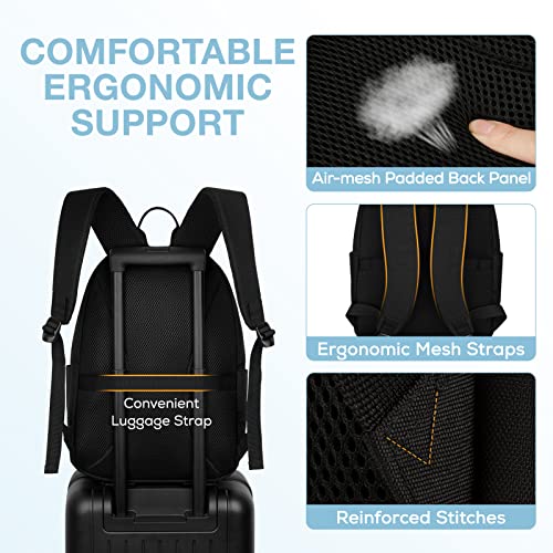• Comfortable and Breathable: The adjustable padded shoulder straps and breathable air mesh back padding for cushioned comfort. The luggage strap ensures the backpack is easy-slide and stands upright.