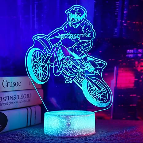 Dirt Bike Night Light, Dirt Bike Gift, 3D Illusion Lamp, 3D Dirt Bike Night Light with Remote and Touch Control, Dirt Bike Decor for Kids Room, Girls Birthday Gifts