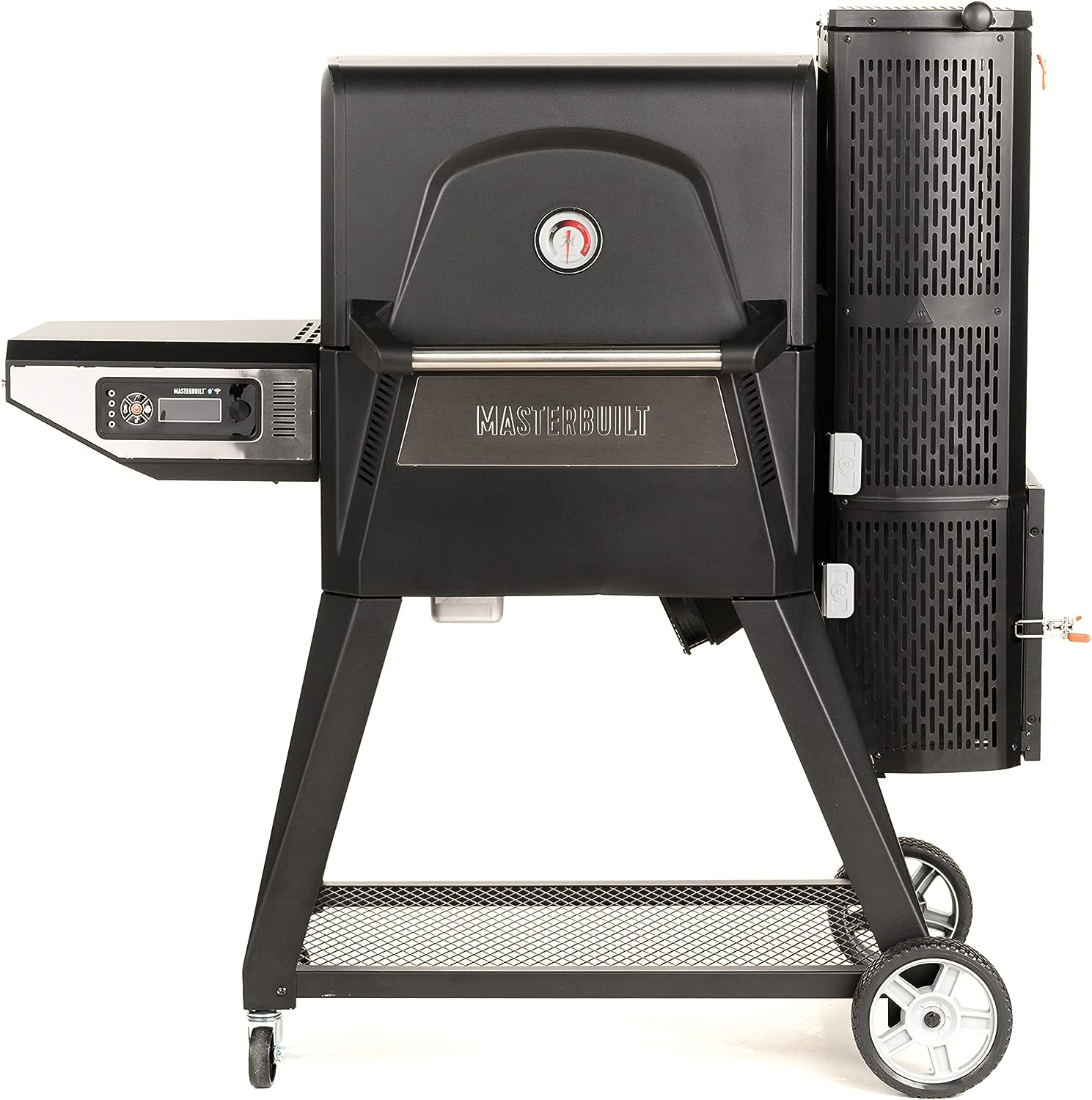 With the Gravity Series 560 Digital Charcoal Grill + Smoker by Master built, you can smoke, grill, sear, bake, roast and so much more. Set the temperature on the digital control panel or your smart device and the Digital Fan maintains the desired cooking temperature. The GravityFed charcoal hopper holds over 12 hours of charcoal and gravity ensures you have constant fuel to the fire. The reversible cast-iron grates are perfect for smoking or searing and in just 13 minutes this grill can reach 700°F. Master the art of charcoal grilling and smoking with Masterbuilt.