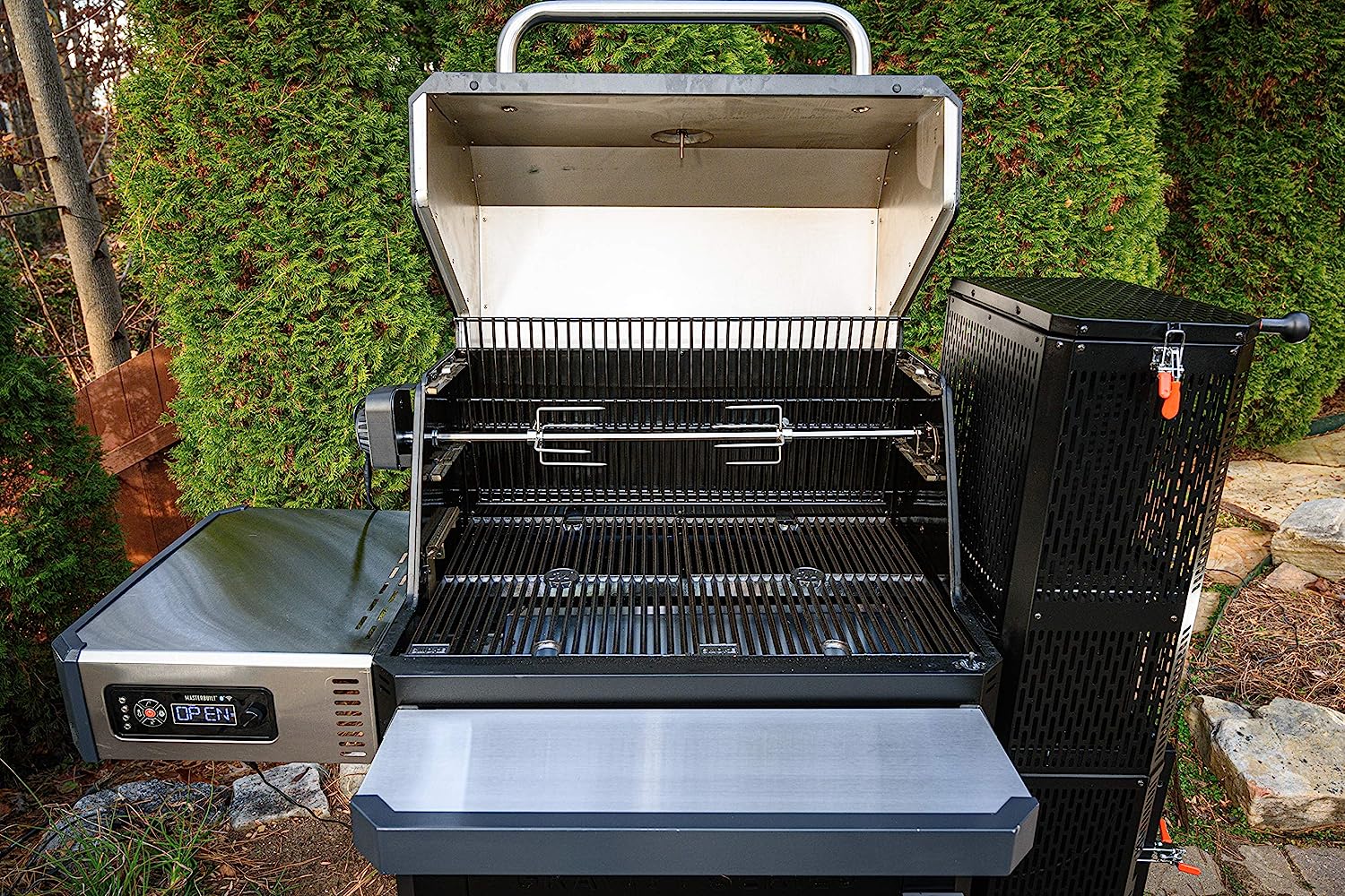 • Includes reversible smoke + sear cast-iron grates for low and slow smoking or high heat searing
