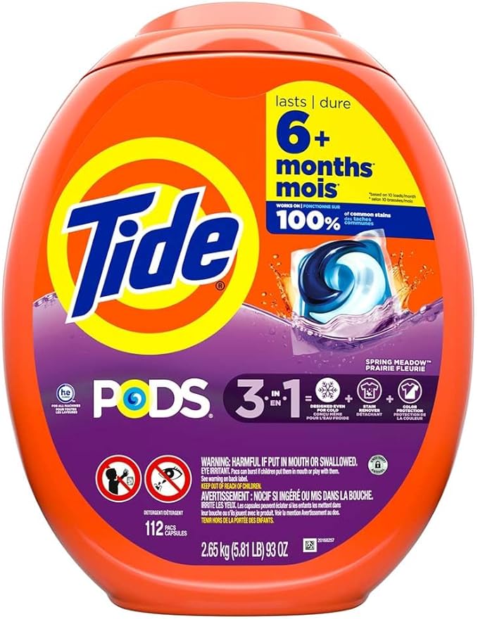 Tide PODS Laundry Detergent Pods, Spring Meadow Scent, 112 Count, Concentrated Laundry Soap Detergent, Stain Remover and Color Protector - Packaging May Vary