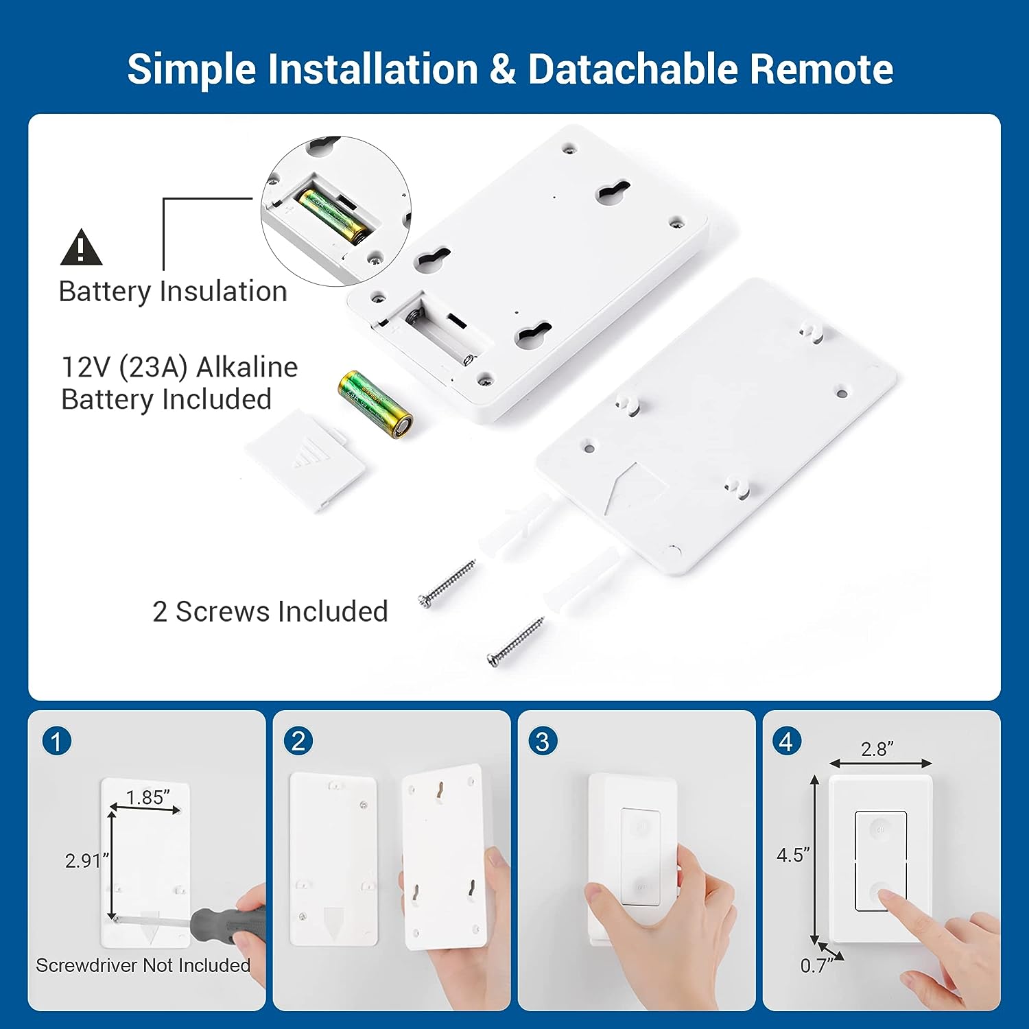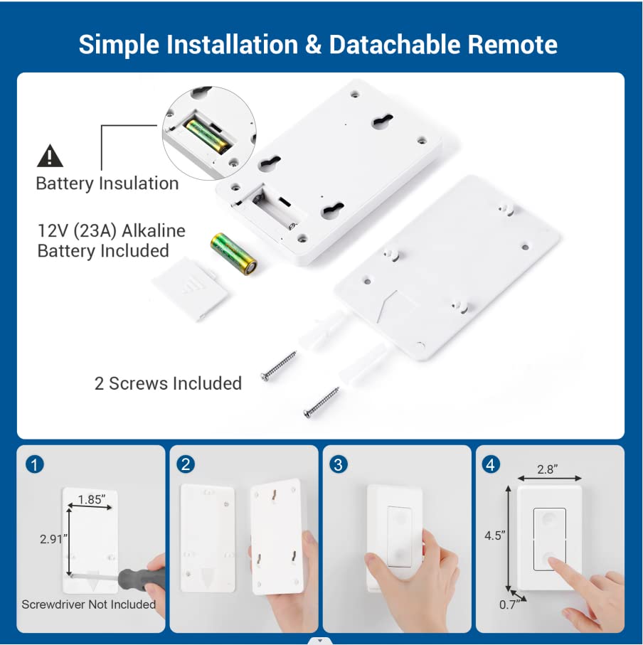 • 【 Detachable Wall Mounted Switch 】 No in-wall wiring needed; mounting bracket provided; simple installation; white wall mountable switch fits any room décor easily; detachable remote switches can also work as handheld remotes