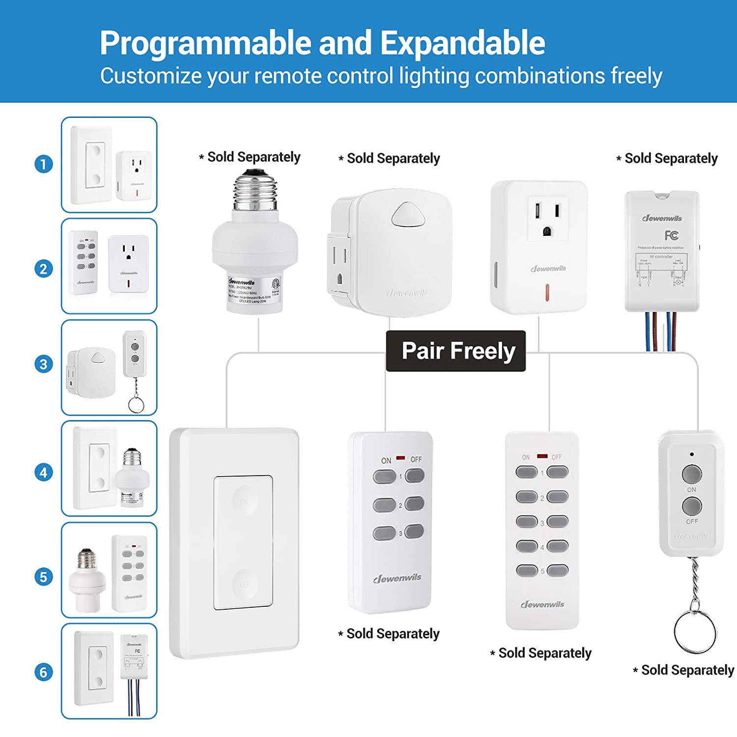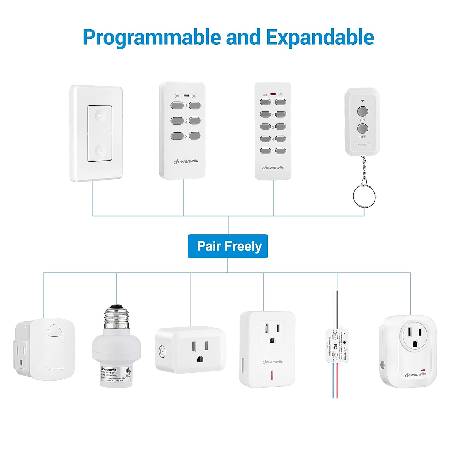 • 【 Programmable and Expandable 】 Available to add extra handheld remotes, outlets and light sockets (Same Model Only); transmitter and receiver have been pre-programmed for immediate use
