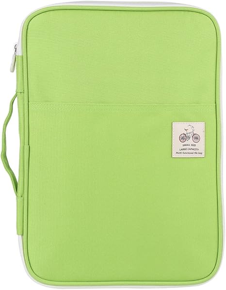A4 Document Bags Portfolio Organizer Computer Notebook Zippered Case Zipped Storage Messenger(Grass Green)