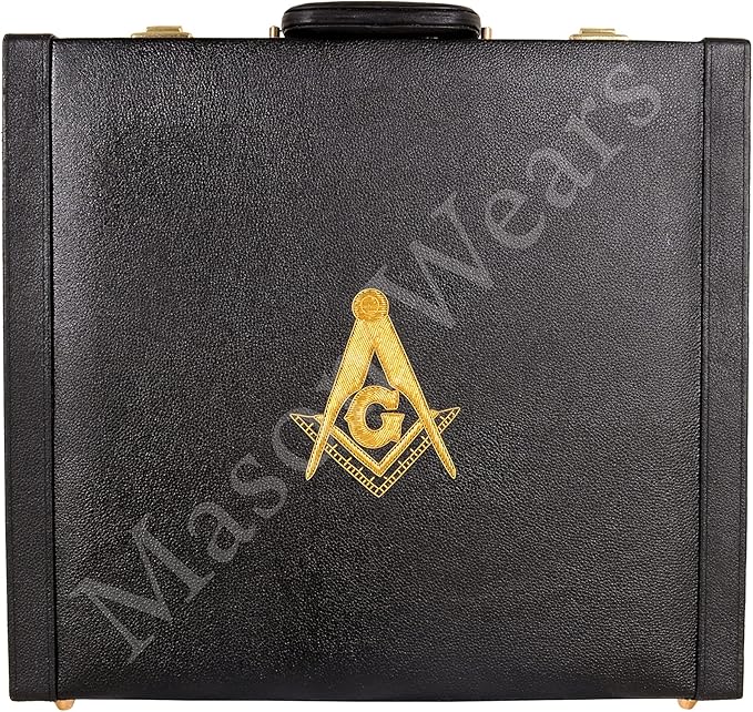 Masonic Regalia Freemasonry MM/WM Mason Apron Hard Case with logo Supreme Being, Yellow Square Compass and G lambskin briefcase