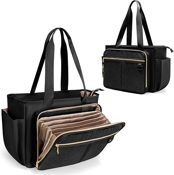 Teacher Tote Bag with Accordion File Organizer Pocket, Large Teacher Work Utility Bag for Women, Black(Patent Design)