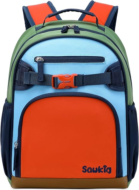 Boys Backpack for Kids 6-8 Kindergarten Nylon Bookbag for School Boy 5-7 (Orange Blue)
