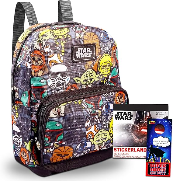 Disney Star Wars Preschool Backpack for Kids, Toddlers ~ 4 Pc School Supplies Bundle with Canvas Star Wars 10" Mini Backpack for Boys and Girls, 295 Stickers, and More