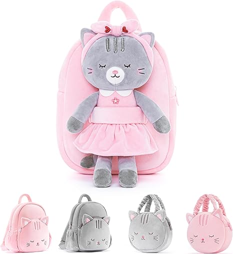 Lazada Cat Toddler Backpack Kitty Kids Backpacks for Girls with Detachable Cat Toy 10 inch