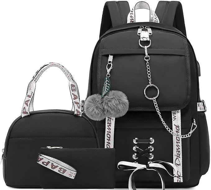 Spotted Tiger School Backpack for Girls with Lunch Box Aesthetic Backpack for Teen Girl Bookbag (Black)