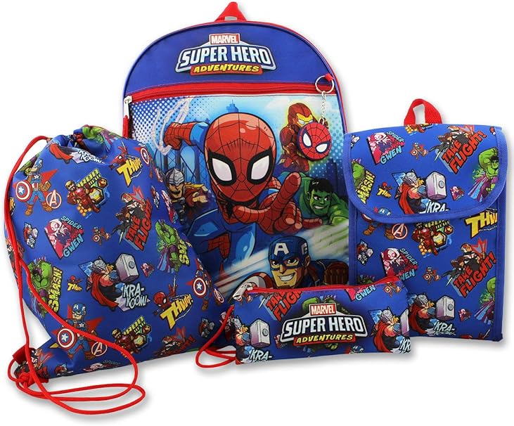 Super Hero Adventures Boys 5 piece Backpack and Snack Bag School Set (One Size, Blue/Red)