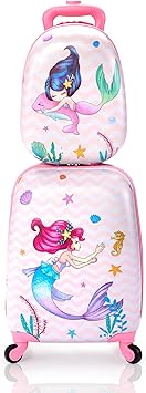 VLIVE Kid Luggage w/Wheels for Girls, Toddler Rolling 16in Suitcase w/12in Backpack, Girl Travel Carry-on(Mermaid)