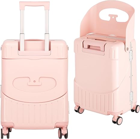 20" Carry On Luggage with Seat For Kids & Adults«_ÔHardside Ride On Suitcase with 360ë�Spinner and TSA Lock For Travel(Light Pink, 20-in)