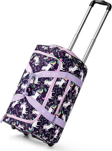 Choco Mocha Girls Unicorn Suitcase with Wheels Kids Purple Rolling Duffle Bag for Camping Teen Girls Toddler Luggage Bag for Travel, 22inch