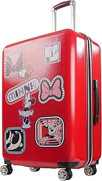 FUL Disney Minnie Mouse Patchwork 29 Inch Rolling Luggage, Hardshell Suitcase with Wheels, Red (FCFL0144-600)