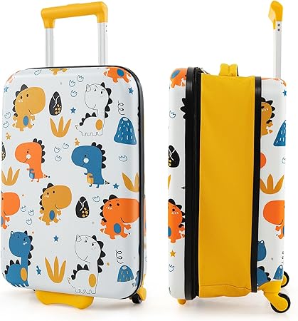 Goplus Kids Luggage, 20_ѝ Foldable Expandable Carry-on Suitcase with Rolling Wheels, Lightweight Airline-Approved Travel Trolley Luggage for Boys Girls Children Toddlers Gifts (Yellow, Dinosaur)
