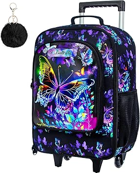 Kids Suitcase for Girls, 18" Carry on Luggage With Wheels, Butterfly Suitcases for Toddler Children(Black)