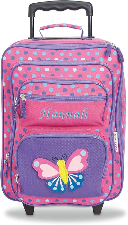Lillian Vernon Personalized Rolling Luggage for Kids 3-D Butterfly Design, 5" x 12" x 20"H