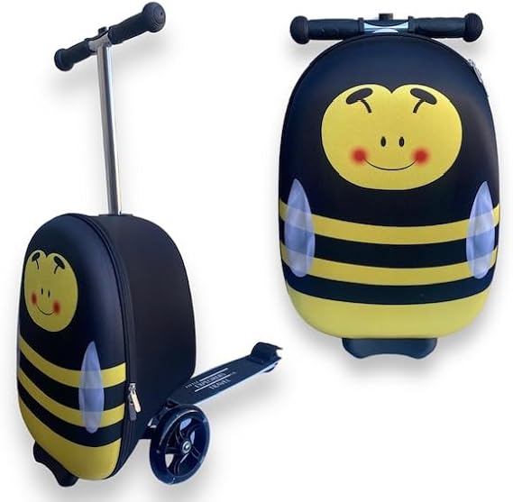 Little Explorers Ride-On Suitcase Scooter for Kids, Lightweight, 2-in-1 W/Light Up Wheels (Bumblebee Ride-On Scooter Suitcase)