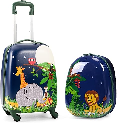 Olakids Kid Luggage Set, 12_Ñé_Ñé Travel Backpack and 16_Ñé_Ñé Carry on Suitcase with Wheels for Children Boys Girls, 2 Pcs Rolling Spinner Trolley Case Gift for Toddlers (Jungle)