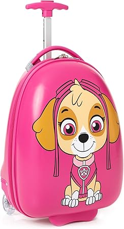 Paw Patrol Skye Suitcase Kids | Girls Pink Cabin Small Hard Cover Holiday Carry On Trolley with Extendable Handle | Helicopter Rescue Pup Animated Character