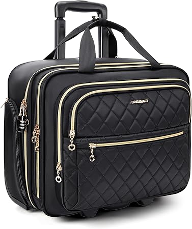 BAGSMART Rolling Laptop Bag Women, Rolling Briefcase Fits 15.6 Inch Laptop, Underseat Carry On Luggage with Wheels, Rolling Computer Bag with TSA Lock, Rolling Bag for Travel Work Business, Black