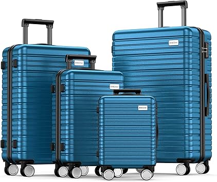 BEOW Luggage Sets 4 Piece, Expandable Luggage Sets with Spinner Wheels, TSA Lock Suitcases with Carry on Luggage (Navy Blue)