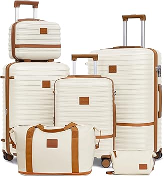 Joyway Luggage Set 3 Piece Suitcase Sets with Spinner Wheel, Hardside Expandable Travel Laggage with TSA Lock (13/20/24/28 White brown