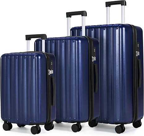 SHOWKOO Luggage Sets 3 Piece 100% PC Ultra Tough Hardside Expandable Suitcases Sets with TSA Lock Double Spinner Wheels (20in/24in/28in, Blue