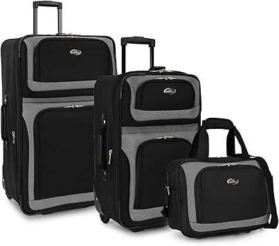 U.S. Traveler New Yorker Lightweight Softside Expandable Travel Rolling Luggage, Black Dobby, 3-Piece Set (15/21/29)