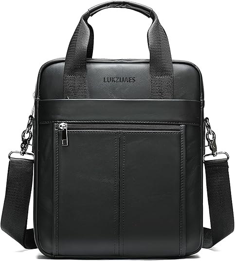 LUKZIJAES Genuine Leather Shoulder Messenger Bag for Men Adjustable Shoulders Sling Crossbody Bags for Travel Work Business Handbag (3#-Black)