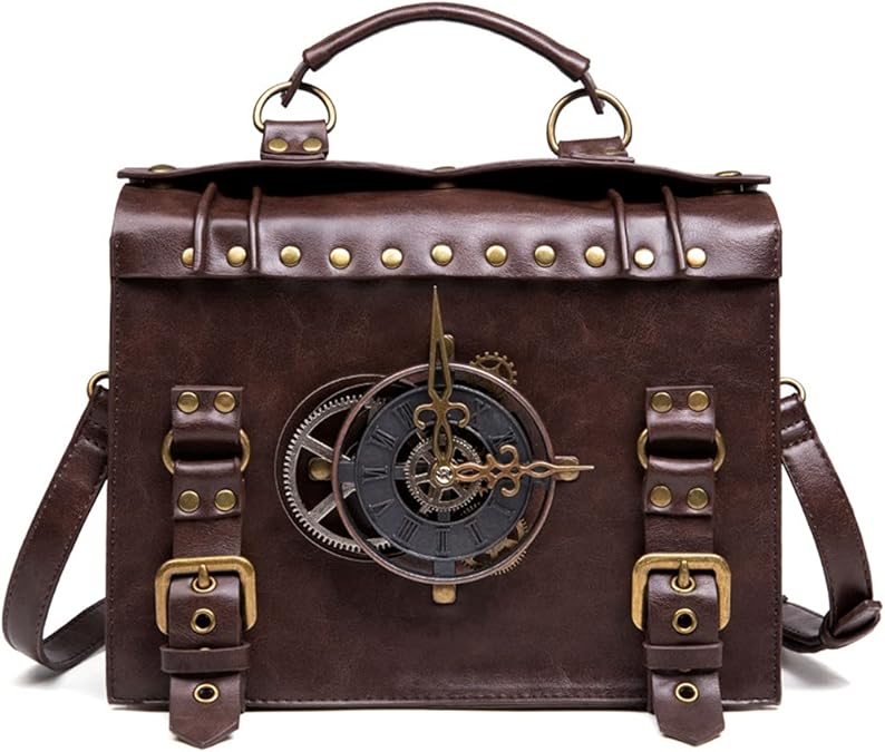 Messenger Bag Leather Retro Briefcase Steampunk Crossbody Shoulder Purse Satchel for Women Lolita Gothic Costume Accessory