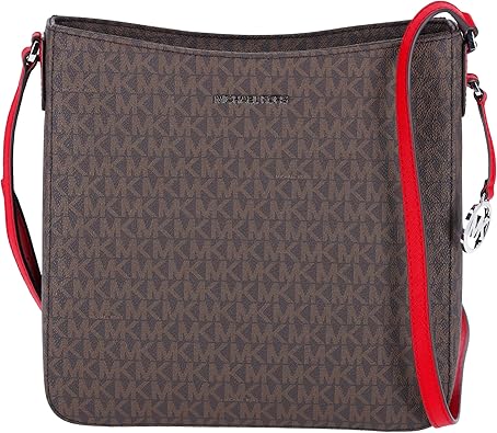Michael Kors Jet Set Travel Large Messenger Bag Crossbody Brown MK Bright Red
