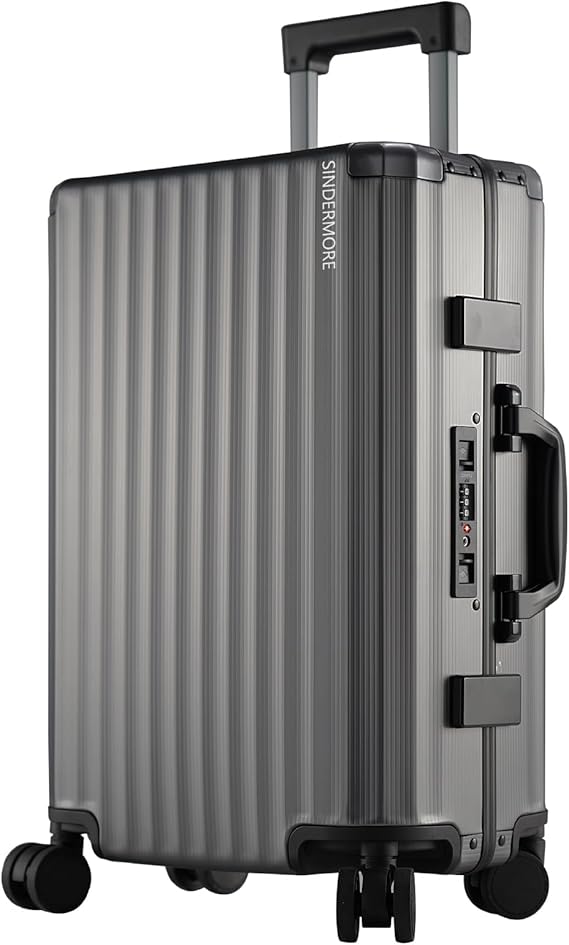 Aluminum Checked Luggage Suitcase, Aluminum Hardside Luggage Suitcase with Spinner TSA Locks (Gunmetal Gray, Checked 25 Inch)