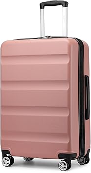 Kono 28 Inch Expandable Spinner Luggage with Wheels Hardshell Large Checked Suitcase TSA Lock Nude/Rose Gold