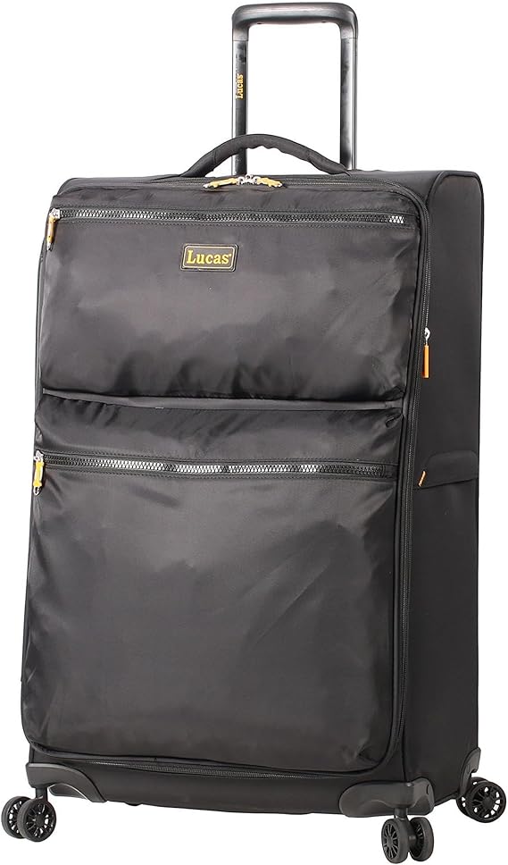 Lucas Designer Luggage Collection - Expandable 24 Inch Softside Bag - Durable Mid-sized Ultra Lightweight Checked Suitcase with 8-Rolling Spinner Wheels (Black)