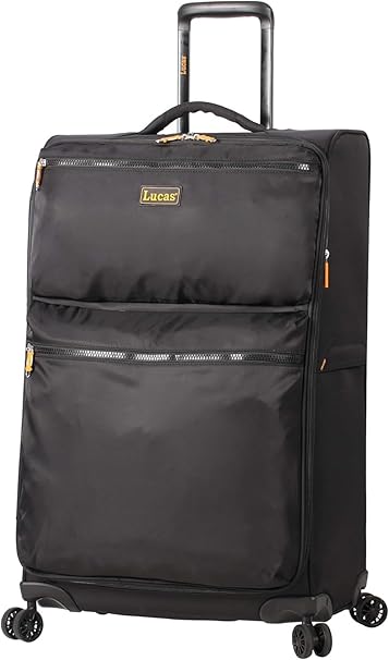 Lucas Designer Luggage Collection - Expandable 28 Inch Softside Bag - Durable Large Ultra Lightweight Checked Suitcase with 8-Rolling Spinner Wheels (Black)