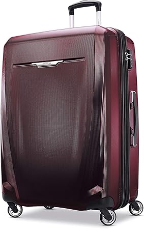 Samsonite Winfield 3 DLX Hardside Expandable Luggage with Spinners, Burgundy, Checked-Large 28-Inch
