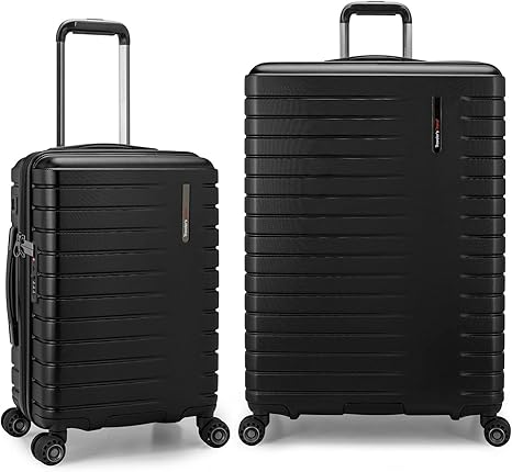 Traveler's Choice Archer Polycarbonate Hardside Spinner Luggage Set, Tie Down Straps, Black, 2-Piece