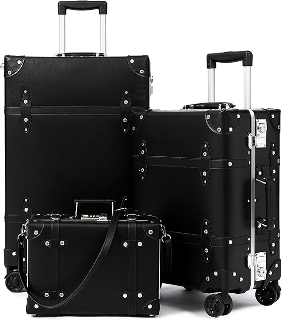 Luxury Vintage Style Luggage Set with Studded Accents, Retro Trunk Suitcase Set with Large Capacity, Double Spinner Wheels and TSA Locks