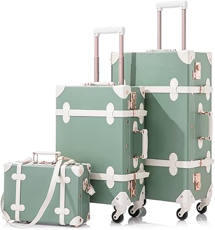 Unitravel 3 Piece Vintage Suitcase Set, 26" Handmade Women Travel Luggage with 12" Handbag, Hardside Faux Leather Carry on Spinner Trunk with TSA Lock (Matcha Green)