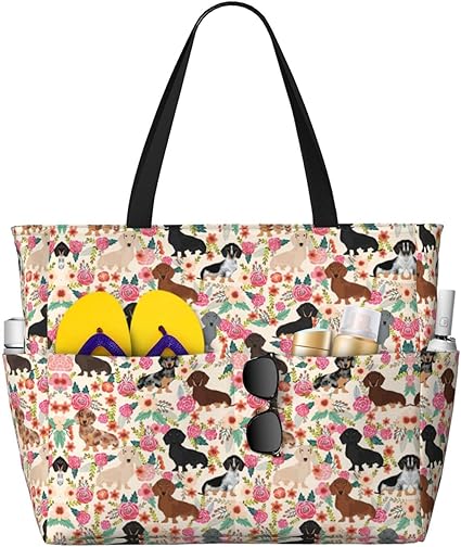 dachshund Beach Tote, Extra Large Beach Bag with Pockets Tote Bag Women Oversized Pool Bag Travel Essentials